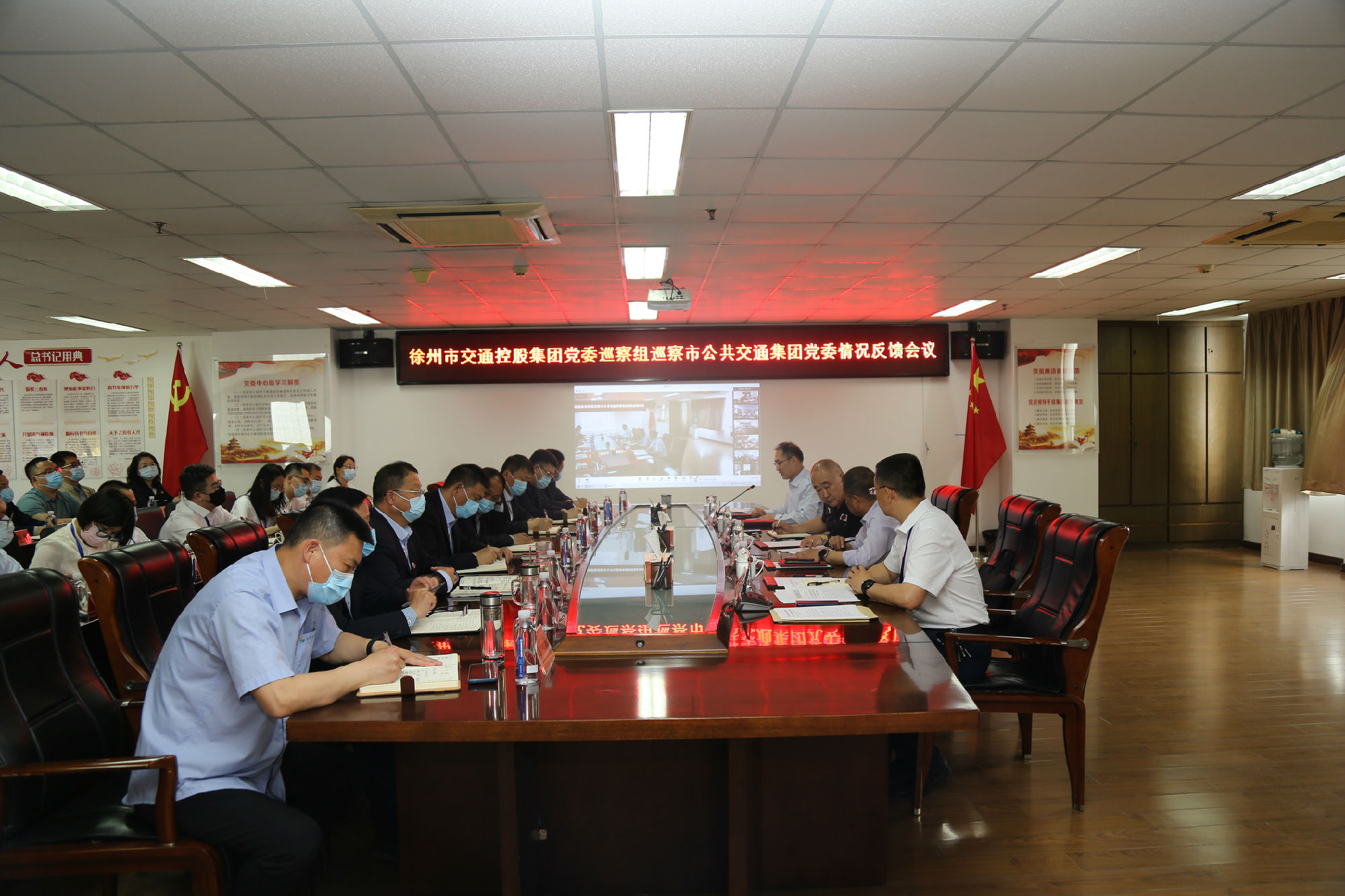 4月24日下午,市交通控股集團(tuán)黨委巡察組巡察公交集團(tuán)黨委情況反饋(視頻)會(huì)議在公交集團(tuán)11樓會(huì)議室召開(kāi)。交控集團(tuán)黨委委員、副總經(jīng)理呂超,交控集團(tuán)黨委委員、紀(jì)委書(shū)記、黨委巡察組組長(zhǎng)廖開(kāi)凱,交控集團(tuán)黨委巡察組成員,以及公交集團(tuán)領(lǐng)導(dǎo)班子成員、機(jī)關(guān)中層、各分子公司及直屬單位班子成員、紀(jì)檢監(jiān)察室紀(jì)檢專員參會(huì)。會(huì)議由公交集團(tuán)黨委書(shū)記、董事長(zhǎng)高守江主持。