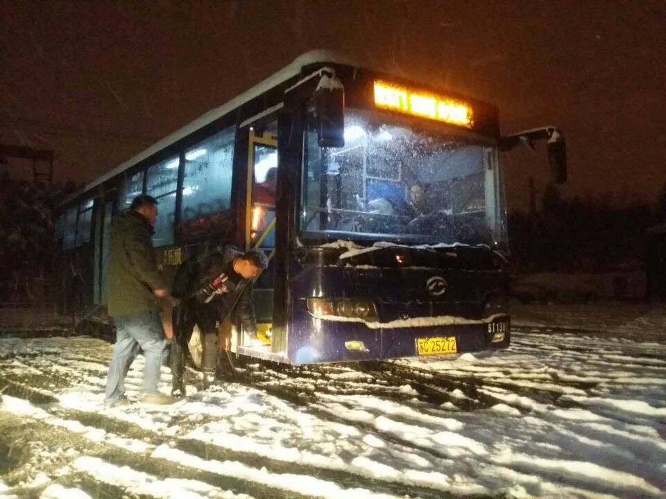 晚間溫度再次下降,路面很快結(jié)冰,部分路段的路面像鏡子一樣,這給營(yíng)運(yùn)工作帶來(lái)一定難度。然而,面對(duì)一張張著急的面孔,駕駛員們謹(jǐn)慎駕駛,安全平安地將每一位乘客送到目的地,而他們此時(shí)每運(yùn)轉(zhuǎn)一趟要比平時(shí)多出1個(gè)小時(shí)。