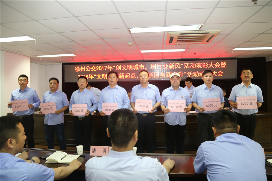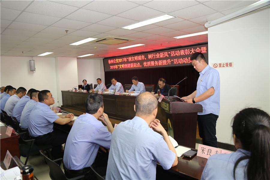 調(diào)研員祖伯鴻宣讀了《關(guān)于表彰2017年度“創(chuàng)文明城市、樹行業(yè)新風(fēng)”先進(jìn)集體和先進(jìn)個(gè)人的決定》。大會(huì)對(duì)獲得榮譽(yù)的先進(jìn)集體和個(gè)人代表進(jìn)行了頒獎(jiǎng)。新區(qū)公司黨支部書記李強(qiáng)、順通公司三車隊(duì)隊(duì)長鹿小可、11路駕駛員曹瑞國等三位同志作了大會(huì)交流發(fā)言。