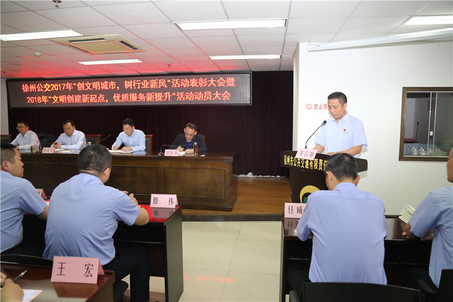5月10日上午,有限公司召開“2017‘創(chuàng)文明城市、樹行業(yè)新風(fēng)’總結(jié)表彰暨2018‘文明創(chuàng)建新起點(diǎn),優(yōu)質(zhì)服務(wù)新提升’活動(dòng)動(dòng)員大會(huì)”,主要任務(wù)是對(duì)全公司文明城市創(chuàng)建常態(tài)長效工作進(jìn)行部署,動(dòng)員全體干部員工認(rèn)清形勢、再鼓干勁,開啟文明創(chuàng)建新征程,再創(chuàng)優(yōu)質(zhì)服務(wù)新提升。公司董事長、總經(jīng)理杜紅軍,工會(huì)主席竇同銀,調(diào)研員張同剛、祖伯鴻,相關(guān)部室負(fù)責(zé)人,營運(yùn)公司經(jīng)理、書記、服務(wù)主管,車隊(duì)長、先進(jìn)個(gè)人代表等87人參加了會(huì)議。